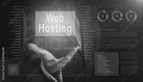 Businessman outreached hand holding a Web Hosting business concept on a computerised screen display.