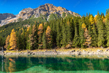 Autumn colours at mountain lake in the Alps, Austria,Tyrol, Lake Obernberg, Stubai Alps.
