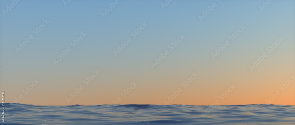 Extremely detailed and realistic high resolution 3d illustration of a sunset at the sea