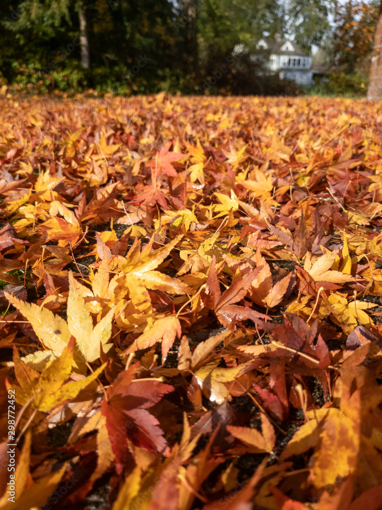 Leaves fallen on the ground creating a fall carpet