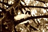 Beautiful little cat stuck in a tree in the garden