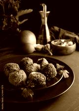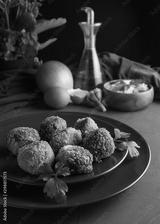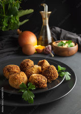 Homemade croquettes on dark wooden background - image