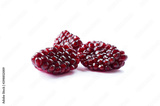 Pomegranate isolated on white background. Sweet and juicy garnet with copy space for text. Garnets isolated on white. Slices of garnets isolated on white background.