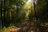 Sunrays glowing during sunrise after a foggy night in the forrest