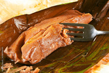Close view of a Puerto Rican pastel, a traditional Puerto Rico christmas food.