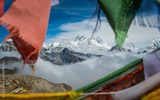 Mount Everest (8,848 m) the highest mountains in the world with Himalayan range view from the top of Renjo la pass (5,340 m) during trekking in Sagarmatha national park, Nepal.