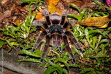 Close up of a Brazilian salmon pink Tarantual sitting in green grass, Pantanal Wetlands, Mato Grosso, Brazil