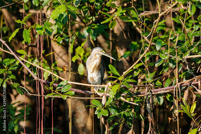 Striated heron perched in a tree in sunlight, Pantanal Wetlands, Mato Grosso, Brazil