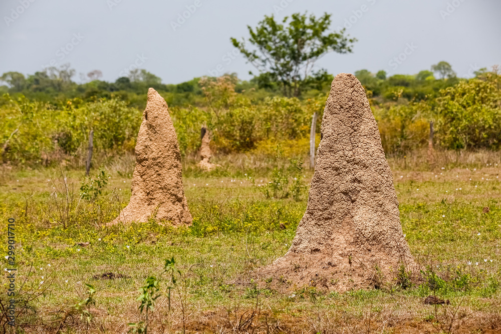 Termite mounts in rural landscape of the Pantanal Wetlands, Mato Grosso, Brazil