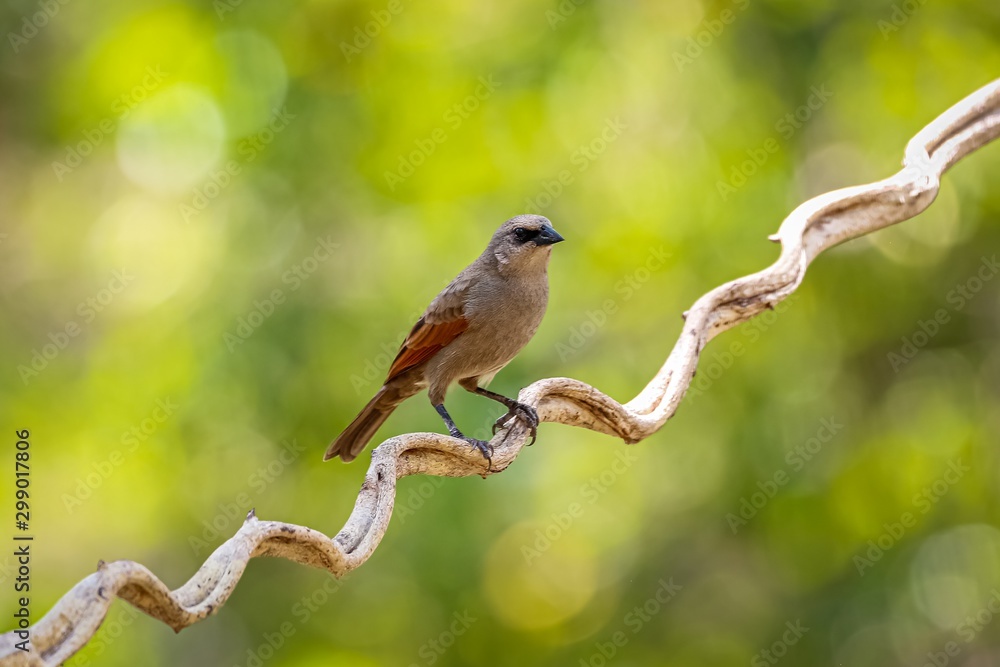 Cowbird perched on a branch against defocused natural background, Pantanal Wetlands, Mato Grosso, Brazil
