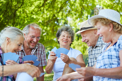 Gruppe Senioren Freunde beim Karten spielen