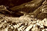 Poprad Lake in the valley viewed from Ostrva mountain peak in High Tatras National Park, Slovakia