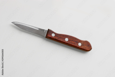 Kitchen utensils - a small knife with a wooden handle for vegetables on a light background. Cooking tools.