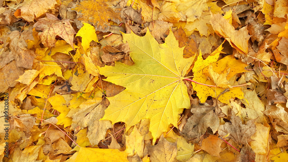 Yellow autumn background from fallen foliage of maple