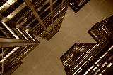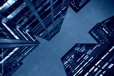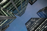 skyscrapers in new york manhattran financial center wall street commercial office view window perspective bluesky travel urban exploration walking discover adventure, angle hogh tower