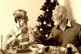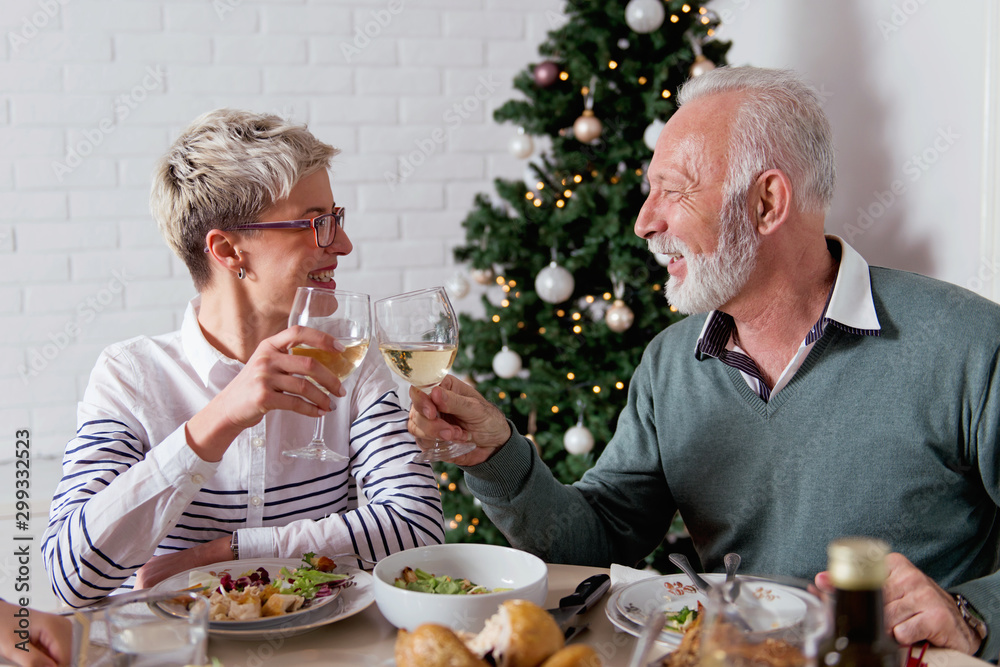 Family gathered over for Christmas holidays, celebrating, having lunch