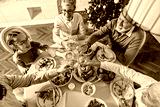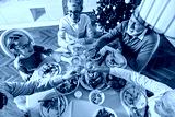 Family gathered over for Christmas holidays, celebrating, having lunch