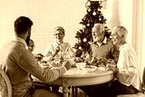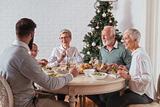 Family gathered over for Christmas holidays, celebrating, having lunch