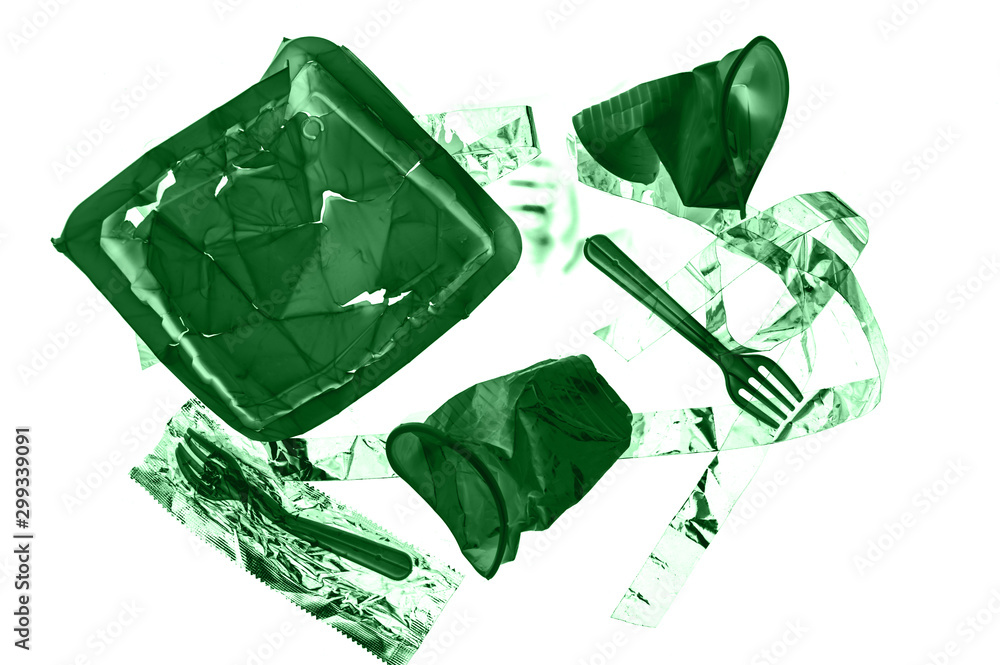 Various disposable crumpled plastic garbage isolated on a white background. Concept of recycling plastic and ecology.