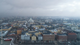 Aerial photo of Helsinki Cathedral, Finland on cloudy day.