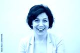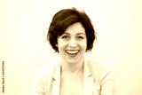 Pretty business woman, successful confidence hilarious laughing portrait with copy space. Attractive middle aged woman in business suit against concrete beige wall.