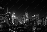 Night view of Midtown Manhattan and Hell's Kitchen, black and white
