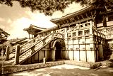 Bulguksa temple entrance view with stairway to Jahamun gate in Gyeongju South Korea