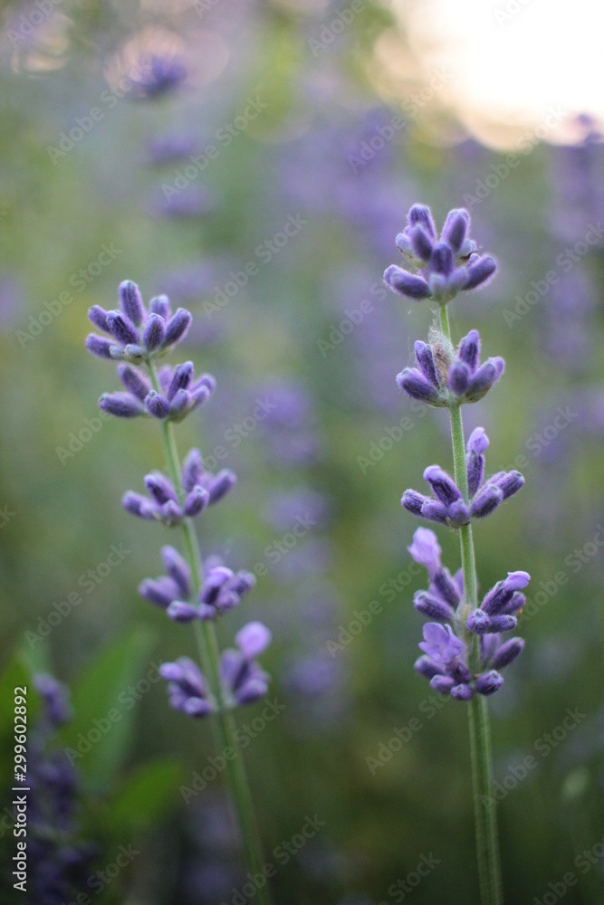 Soft focus on beautiful purple lavender flowerin field, blur natural flower background, Green bokeh out of focus background from nature garden at sunset