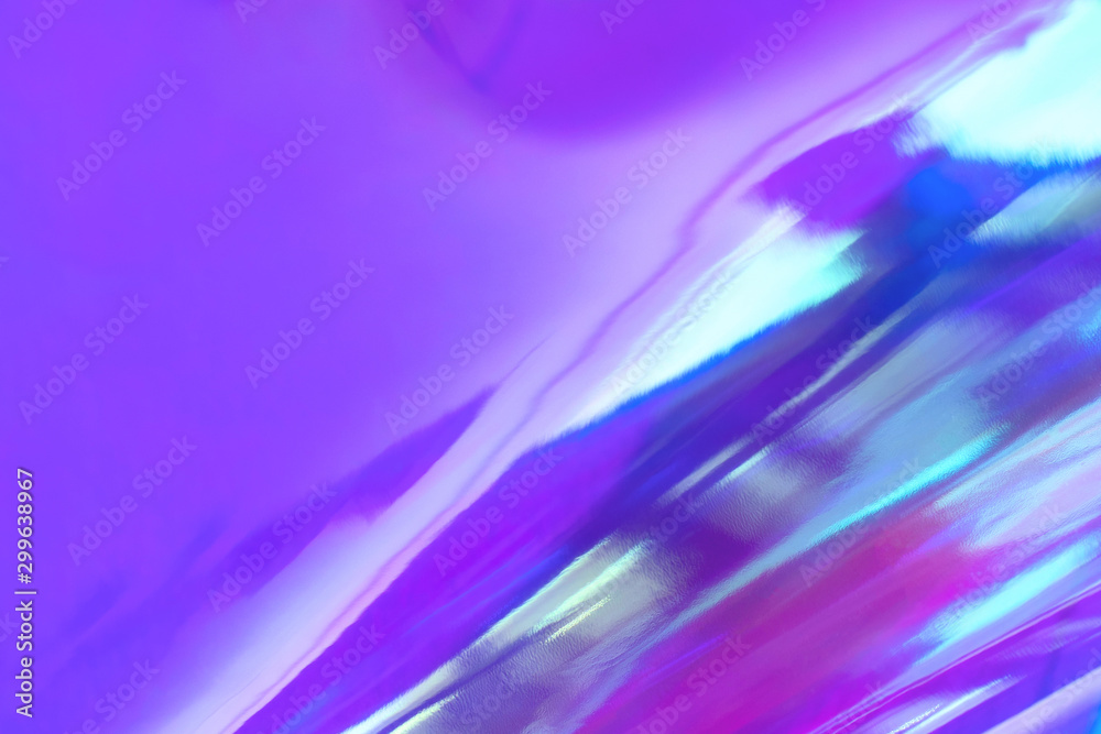 Abstract trendy holographic background in 80s style. Blurred texture in violet, pink and mint colors with scratches and irregularities. Retro futurism, webpunk, disco. Pastel colors.