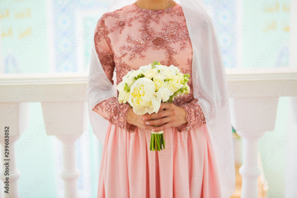 Beautiful young muslim bride preparing for wedding