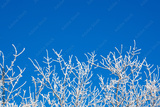 Snow covered winter birch tree tops blue sky Branches covered with snow
