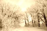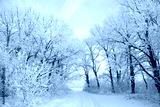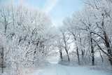 Winter landscape in the city Park on a cloudy day. Snow-covered tree branches on a winter cloudy day Branches covered with snow