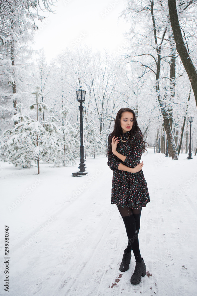 Shot of gothic woman in a winter park.