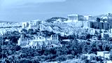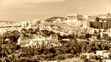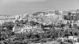 Athens cityscape, Greece. Acropolis with famous Parthenon. It is top landmark of Athens. Urban landscape of old Athens with classical Greek ruins. Scenic panorama of remains of ancient Athens city.