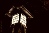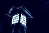 Higashiyama Hakusan Shrine closeup of lantern in dark creepy spooky night in Takayama, Gifu Prefecture in Japan