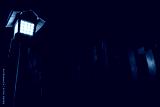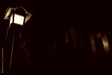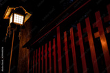 Higashiyama Hakusan Shrine one bright lamp lantern in dark creepy spooky night in Takayama, Gifu Prefecture in Japan