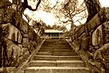 Takayama, Japan Higashiyama walking course in Gifu during day with stone steps entrance to architecture of Soyuji temple