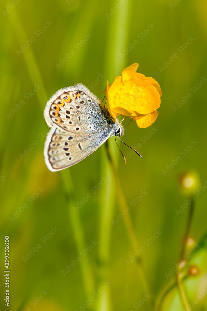Silver-studded Blue butterfly - Plebejus argus, beautiful colored buttefly from European meadows and grasslands.