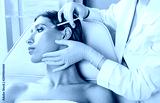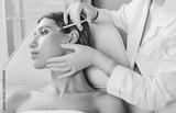 botulinum toxin injections in forehead. Anti aging procedure after 30 years, cosmetologist making injection
