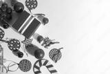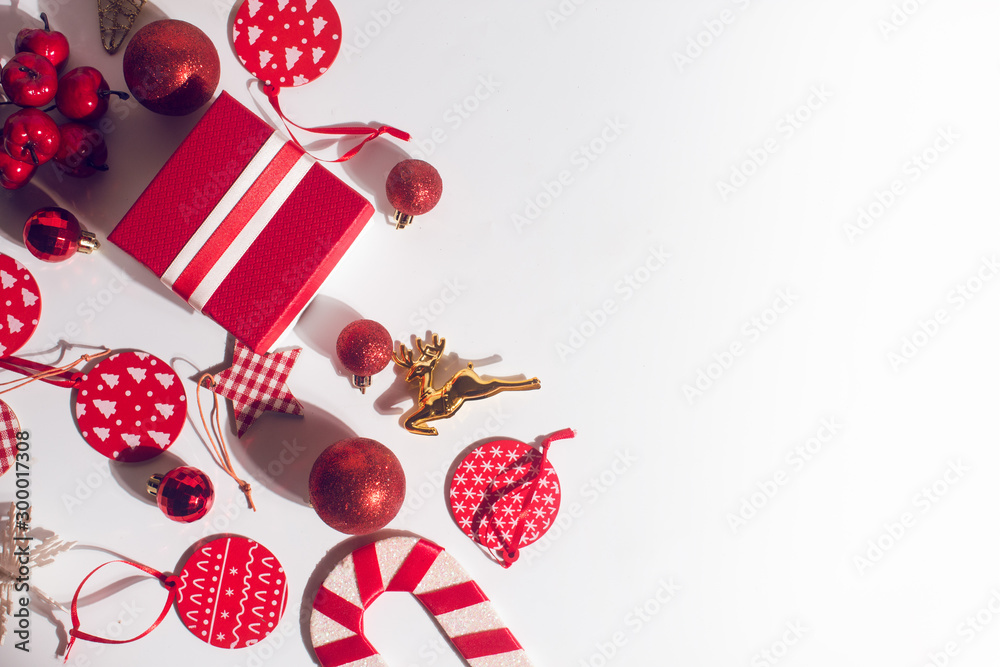 celebration happy new year and merry christmas season greeting holiday festival with red prop decoration gift on vintage background