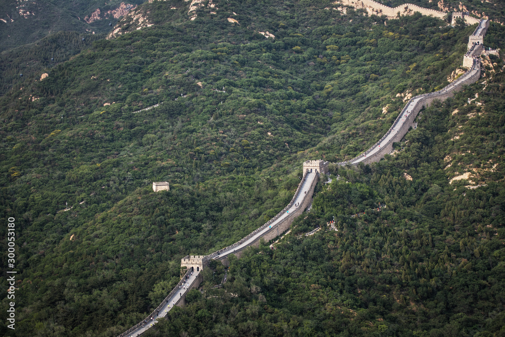 Great Wall of China in summer landscape.