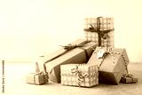 A heap of Christmas or Valentine Day handcrafted gift boxes.