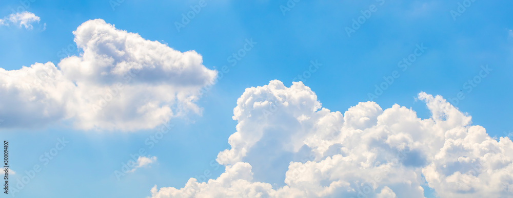 The white fluffy clouds and light blue sky in the sunny day.