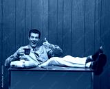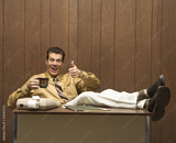 retro business scene of man at desk.