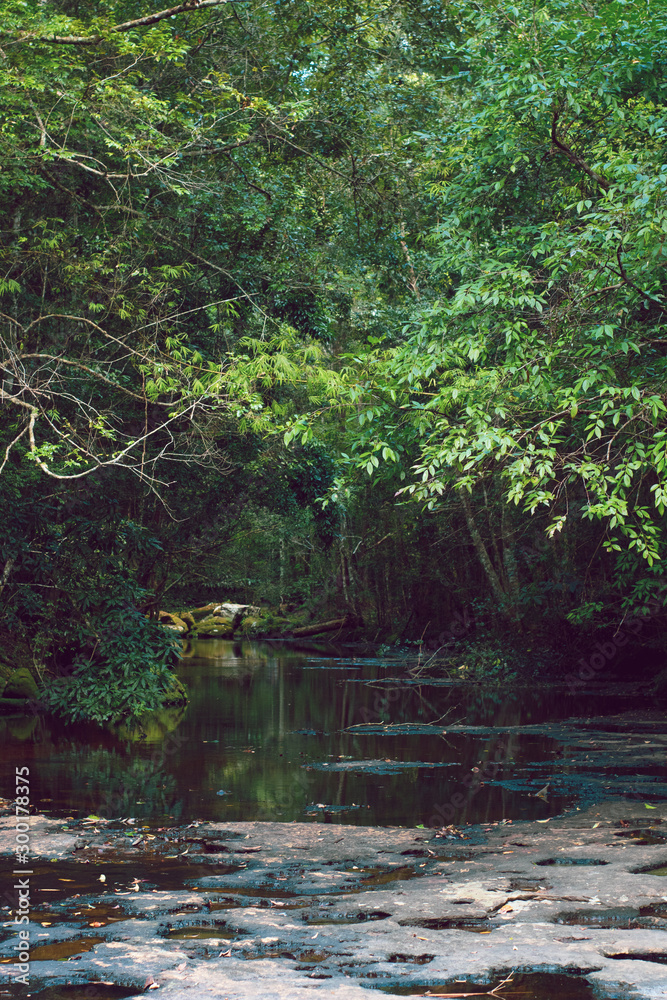 waterfall nature with river stone in forest background, vacation holiday and travel to natural environment wildlife