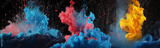 Acrylic colors and ink in black water. Ink blot. Abstract background. Horizontal long banner.