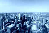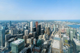 Aerial view of Toronto City Skyscrapers, Looking northeast from top of CN Tower toward East York and Scarborough districts in summer, Union Station at bottom right. Toronto City, Ontario, Canada