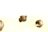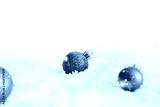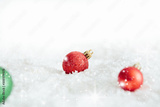 Christmas balls in the snow on white Beautiful Christmas bauble decorations lie on the white fluffy snow. Atmosphere of magic and fairy tales