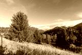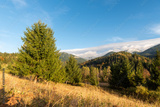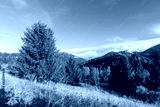 Amazing mountain landscape with colorful vivid sunset on the blue sky