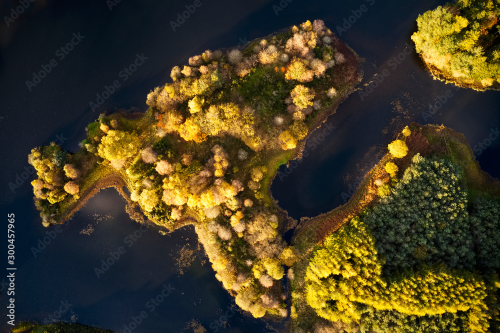 Island aerial view from above at Knapps Loch Kilmacolm